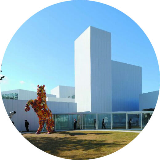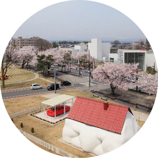 中心市街地は、「碁盤の目」に整然と区画された美しい街並みが特徴です。その象徴的な場所が、長さ1.1kmにわたるまっすぐな道、官庁街通りです。この道は、日本の道・百選や新・日本百景に選定され、市民はじめたくさんの方に愛されています。平成17 年、この官庁街通り全体を美術館に見立てて、十和田市現代美術館の建設やアートプログラムの活動を進めていこうという「アーツ・トワダ」がスタート。同館を中核に空き地を公園化した「アート広場」を完成させ、数々の美術集団や地域づくり集団が活動し、多くの市民たちがアートを身近に暮らしています。