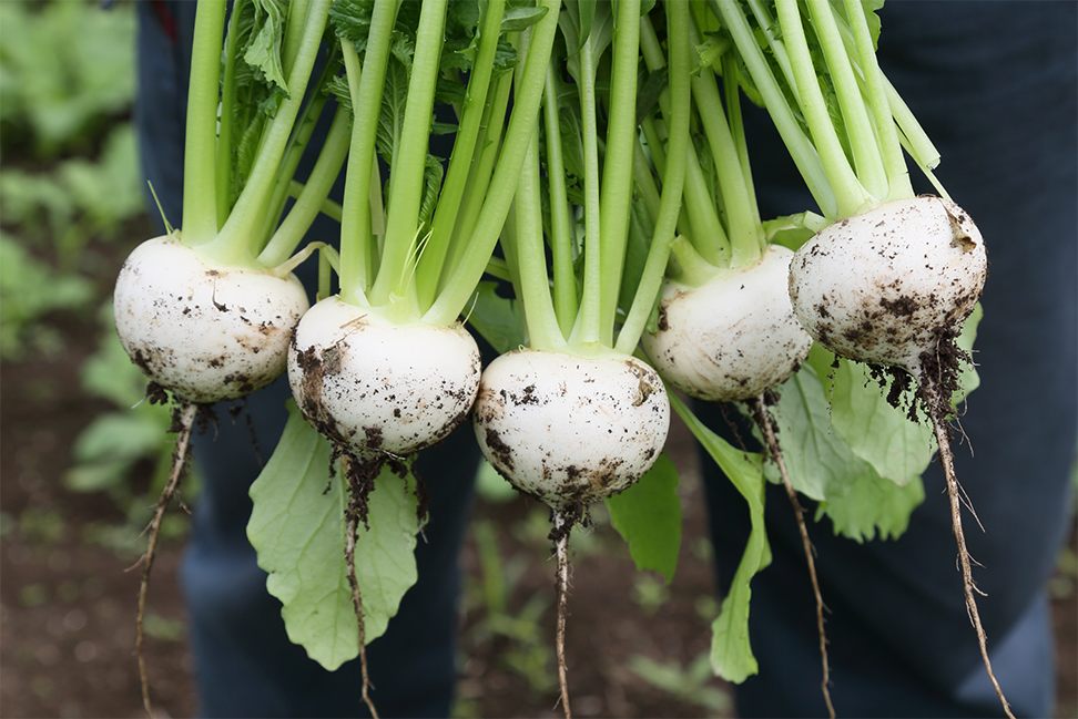 純白に輝く『野辺地葉つきこかぶ』に〝ひと口惚れ〟
