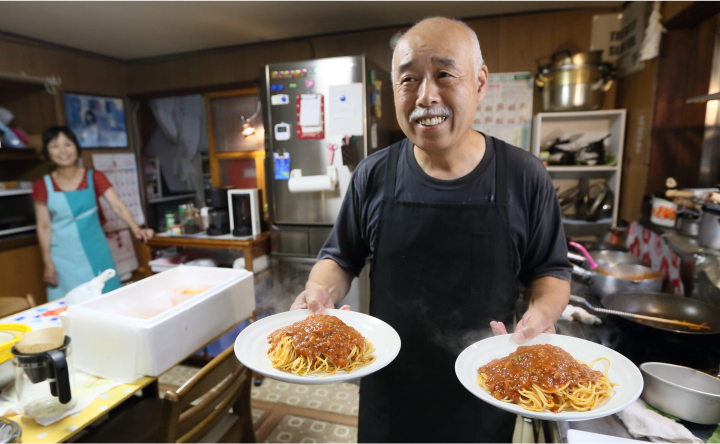 ランチタイムには、車で10分ほどの町役場職員やむつ市内に勤務する会社員、観光客などが訪れます。以前も喫茶店をしていた夫妻のこと、料理はお手のものです。ピザやパスタ、焼きカレーなどのメニューは、おいしくてボリュームもあると評判です。