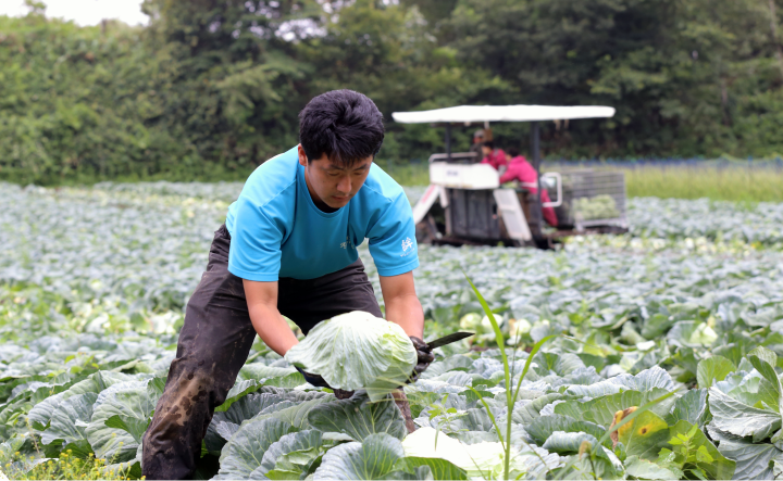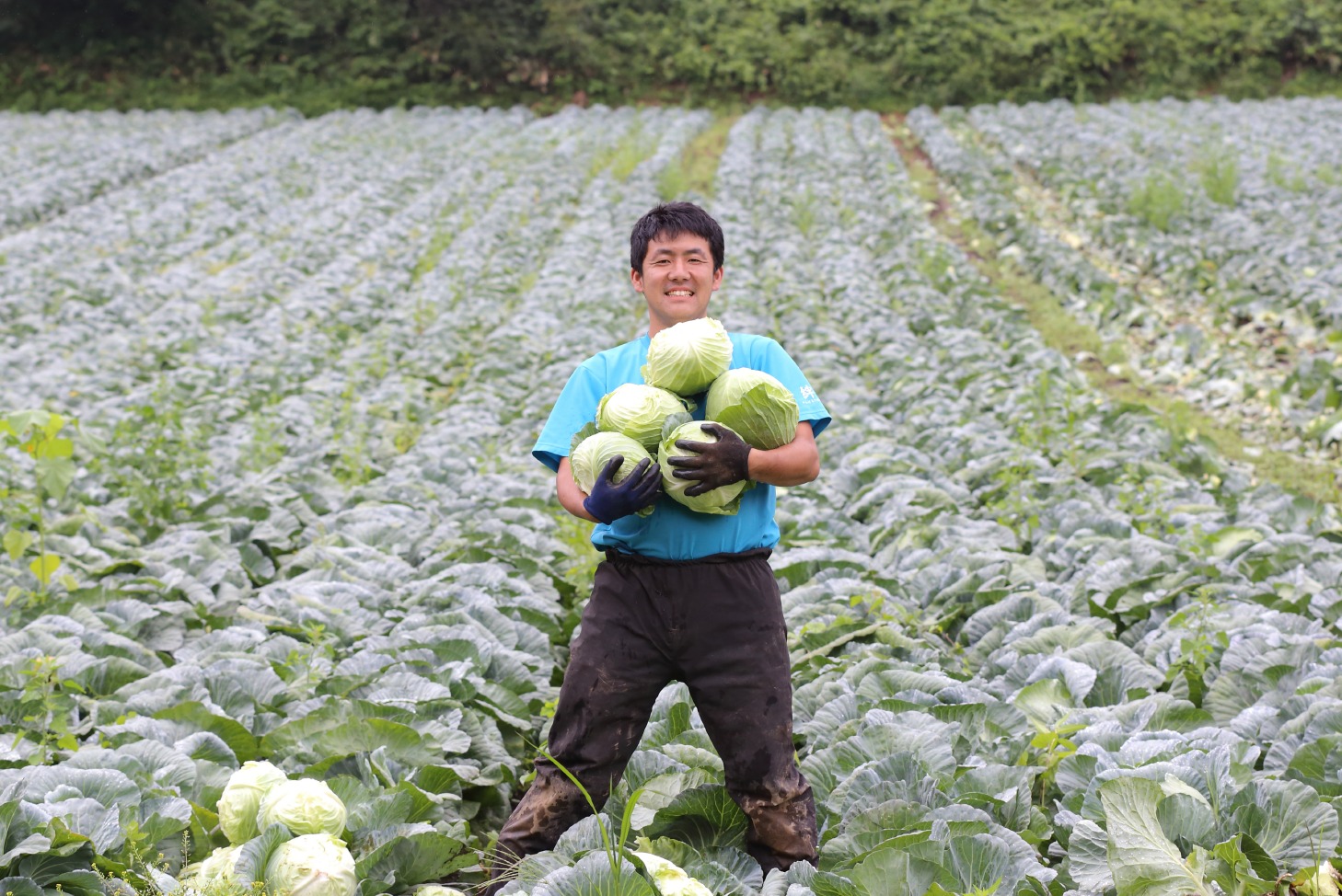 1987年生まれの乙部暁さんは野菜農家の三代目。東京ドーム6個分の広大な畑で、特産のナガイモをはじめゴボウ、キャベツ、ダイコンを生産しています。