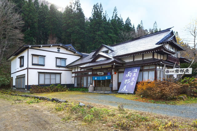 奥入瀬渓流の玄関口に位置する「温泉民宿 南部屋」。温泉は、加温、加水を行わない源泉かけ流し100%。浴室と浴槽に地元青森の「青森ヒバ」を使用した香り豊かな癒しの温泉です。お湯は白く、湯の花が多いのが特徴でお湯の中をふわふわと舞うように浮遊しています。母屋は大正年間に建てられた古民家を移築したもので、宿の中には、休憩所もあり旅の疲れを癒しながら、古き良き日本を感じられる空間が魅力です。