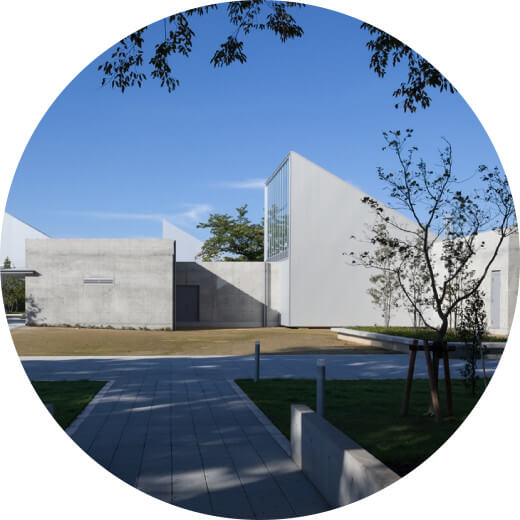 西沢立衛氏が設計したArts Towada(野外芸術文化ゾーン)の中心となる施設。目の前にはアート広場があり、自然の空気を吸いながらただ歩くだけでも癒される、アートの街・十和田ならではの光景が味わえます。