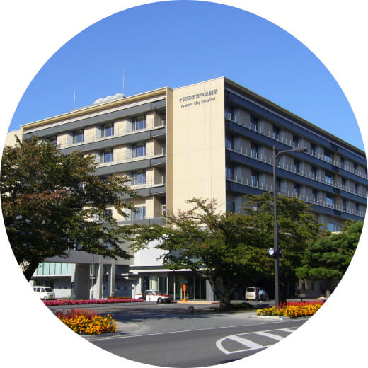 公的施設が集まっている市街中心部に病院があります。周辺の町村も含めた二次医療圏のひとつである「上十三地域保健医療圏」の中核的病院です。