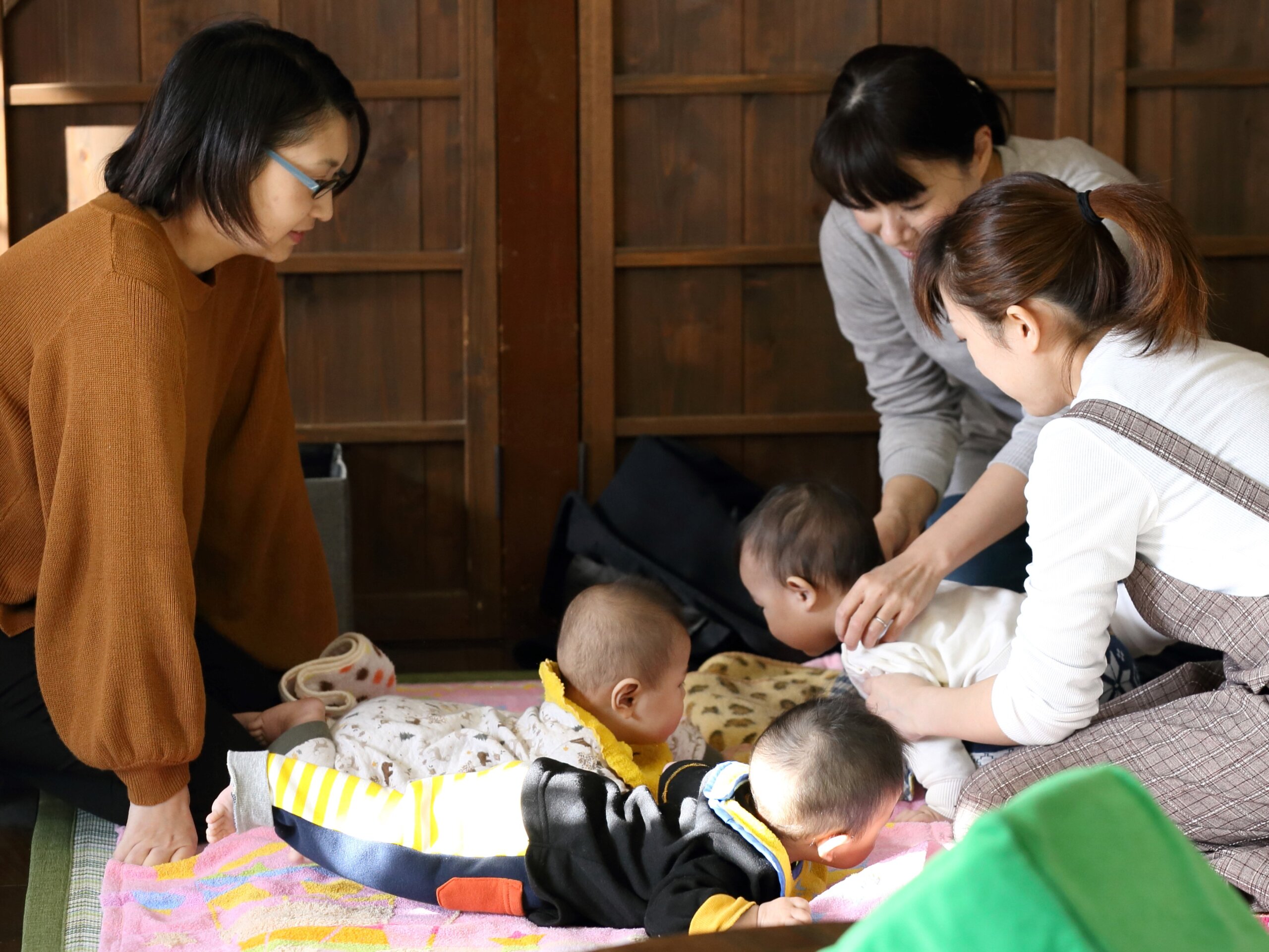 親子ともに、我が家のようにくつろぐ姿が印象的。このリラックスした雰囲気を縁の下で支えているのは、子育て支援センター室長の金渕まゆみさんとスタッフの下山千春さんです。
