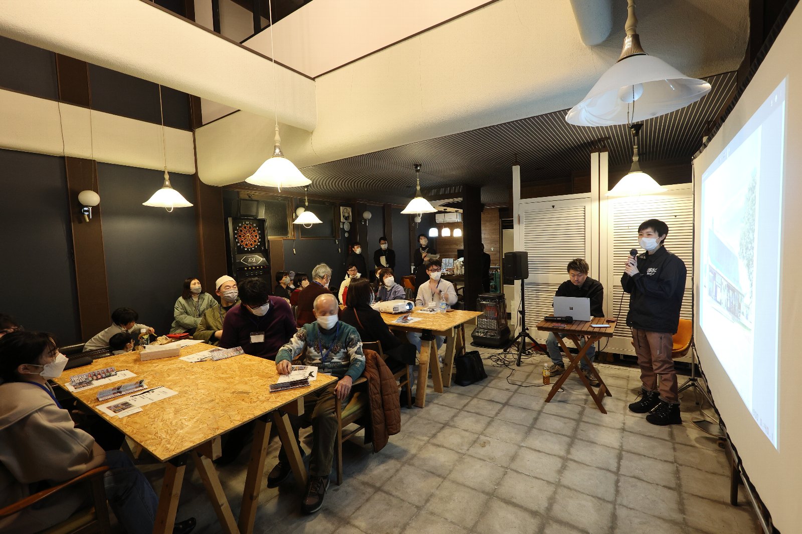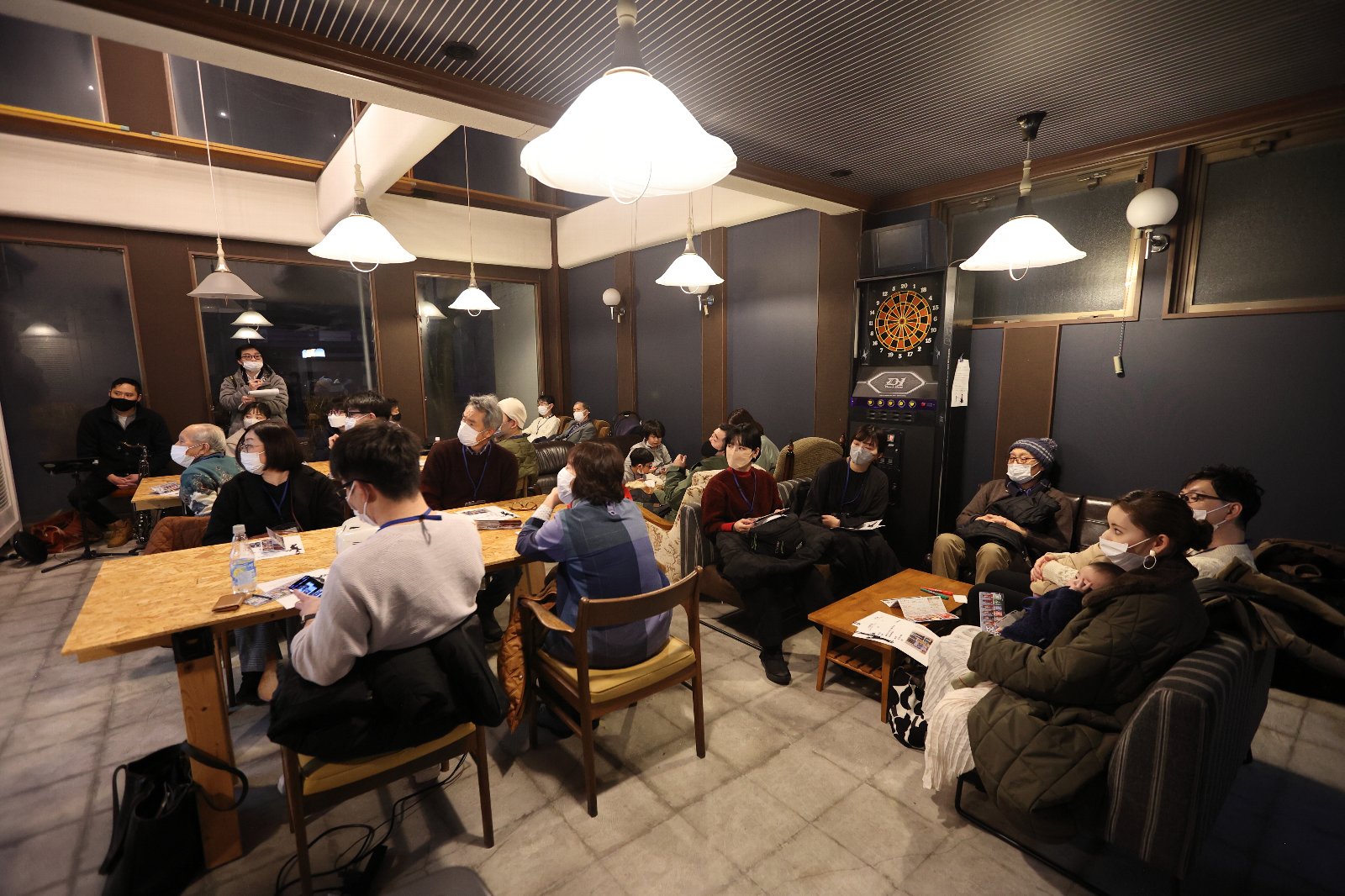 2023年1月15日、空き店舗を活用したコワーキング&交流スペース「third.」にて移住者交流会が行われました。第1部では、奥入瀬ブルワリーのブルワーになるため移住した安藤和美さんが移住の経緯や現在の仕事について語り、第2部ではサックスの生演奏を堪能しながら、参加者が思い思いに交流を楽しみました。赤ちゃんからシニアまで、暖かな雰囲気の中で笑顔が絶えないイベントとなりました。