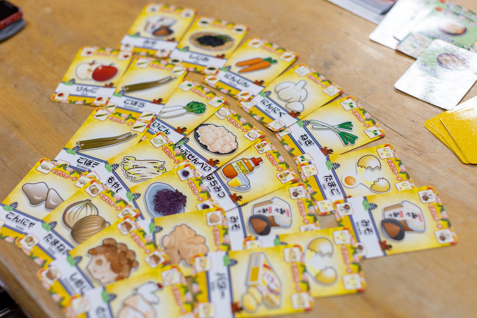 配られたメニューカードに従って自分のキッチンに食材を揃えていくと、地元の名物料理ができあがるというものです。北海道版や沖縄版もあって、親子でゲーム会をスタートするときも、大人も子どもも同じルールで遊べるゲームとしてこの「レシピ」を体験しようって始めたんですよ。やっているうちにこのゲームの青森版があってもよくない?と思い始めて、ゲームのメーカーに問い合わせて青森版を作ることになったんです。