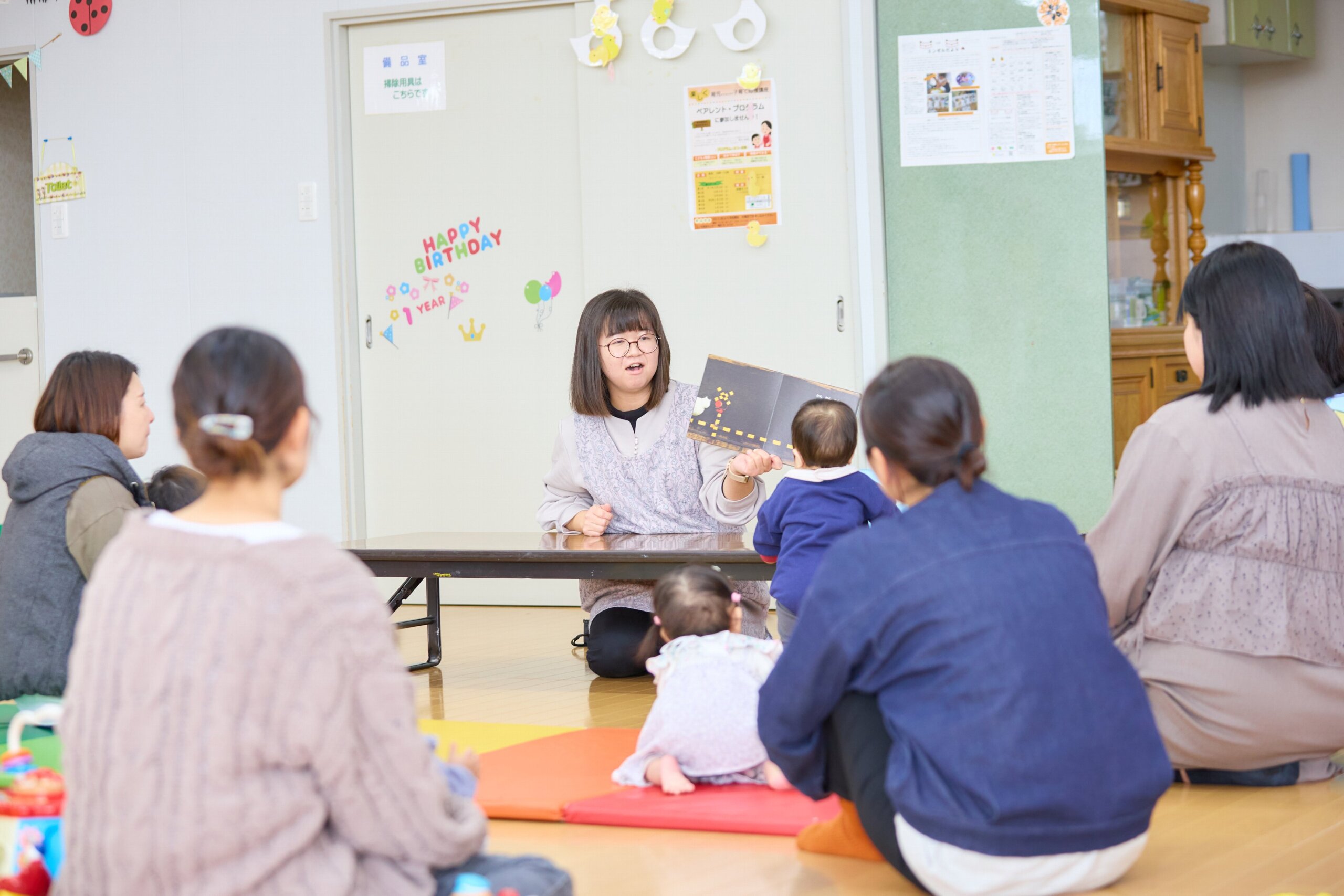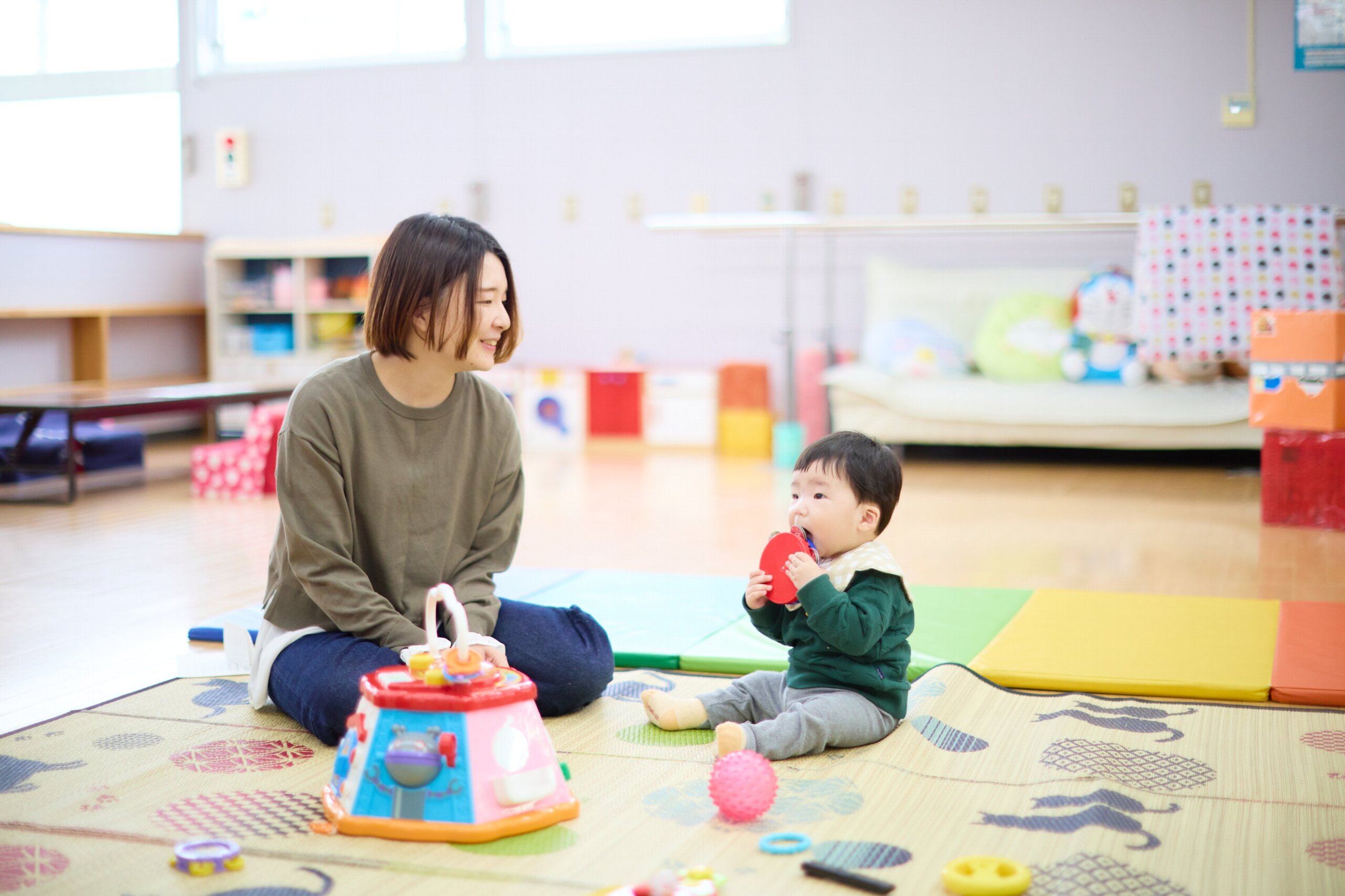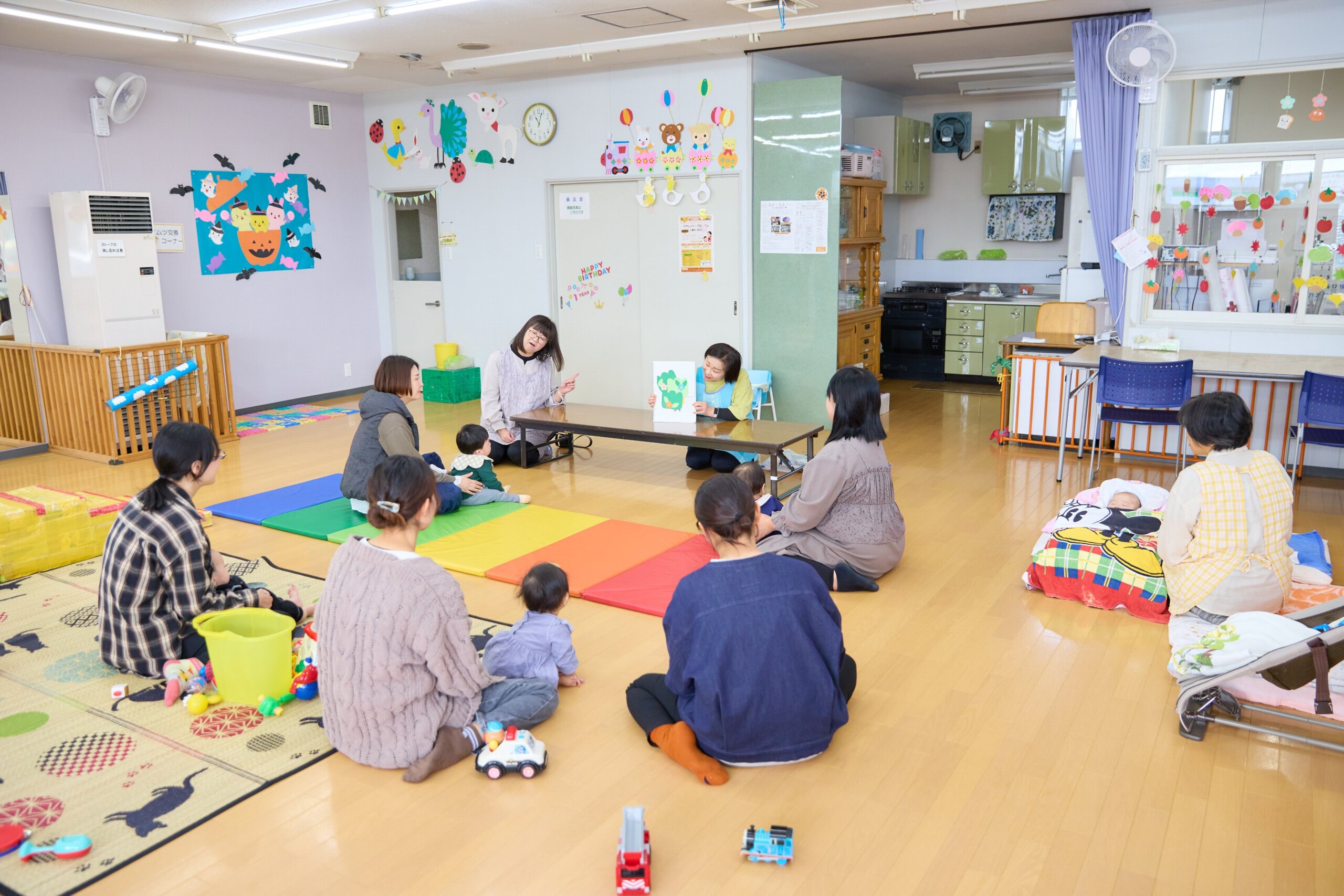 子育て中の親子であれば自由に利用できる子育て支援拠点。市内7カ所に設置されており、支援員の見守りのもと、親子同士が交流したり、月齢に合わせたプログラムやイベントに参加したりできます。運営は地域の保育所・認定こども園が担っています。