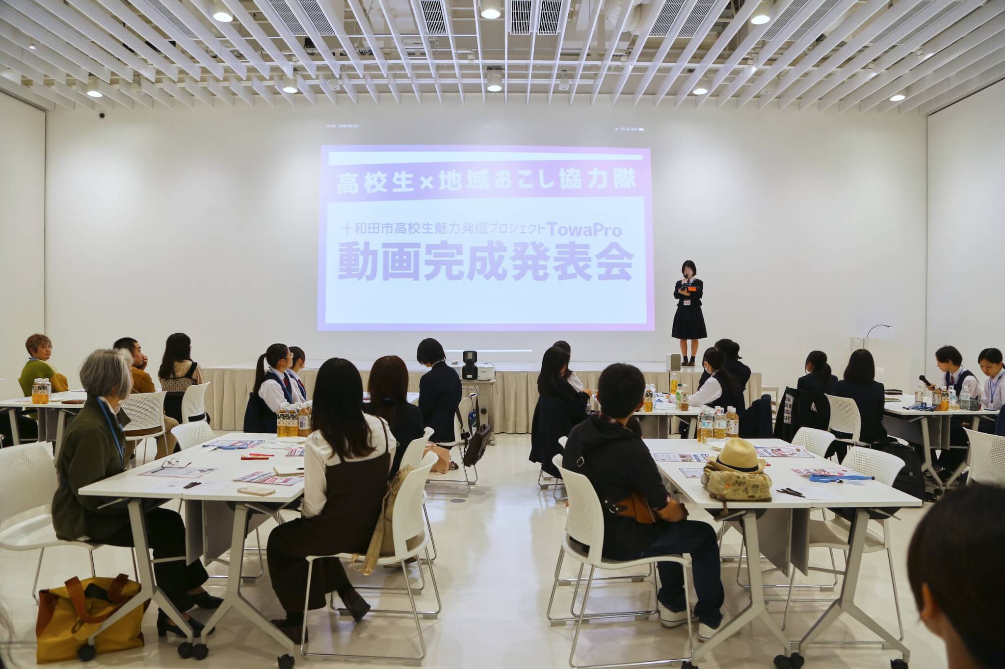 2024年10月12日(土)、地域交流センター「とわふる」大ギャラリーにて、十和田市高校生魅力発信プロジェクト「TowaPro(とわプロ)」動画完成発表会が開催されました。